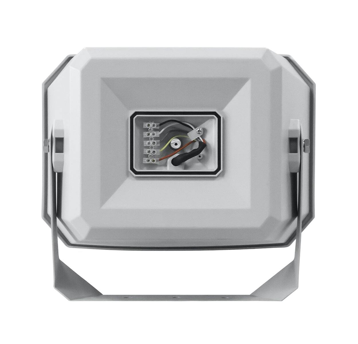 Всепогодный рупорный громкоговоритель ECLER eMSP50Ti монтируется при помощи П-образного монтажного кронштейна, который входит в комплект поставки. Подключение к акустической линии производится при помощи клеммной колодки, расположенной в специально защищенном отсеке на задней стенке изделия.