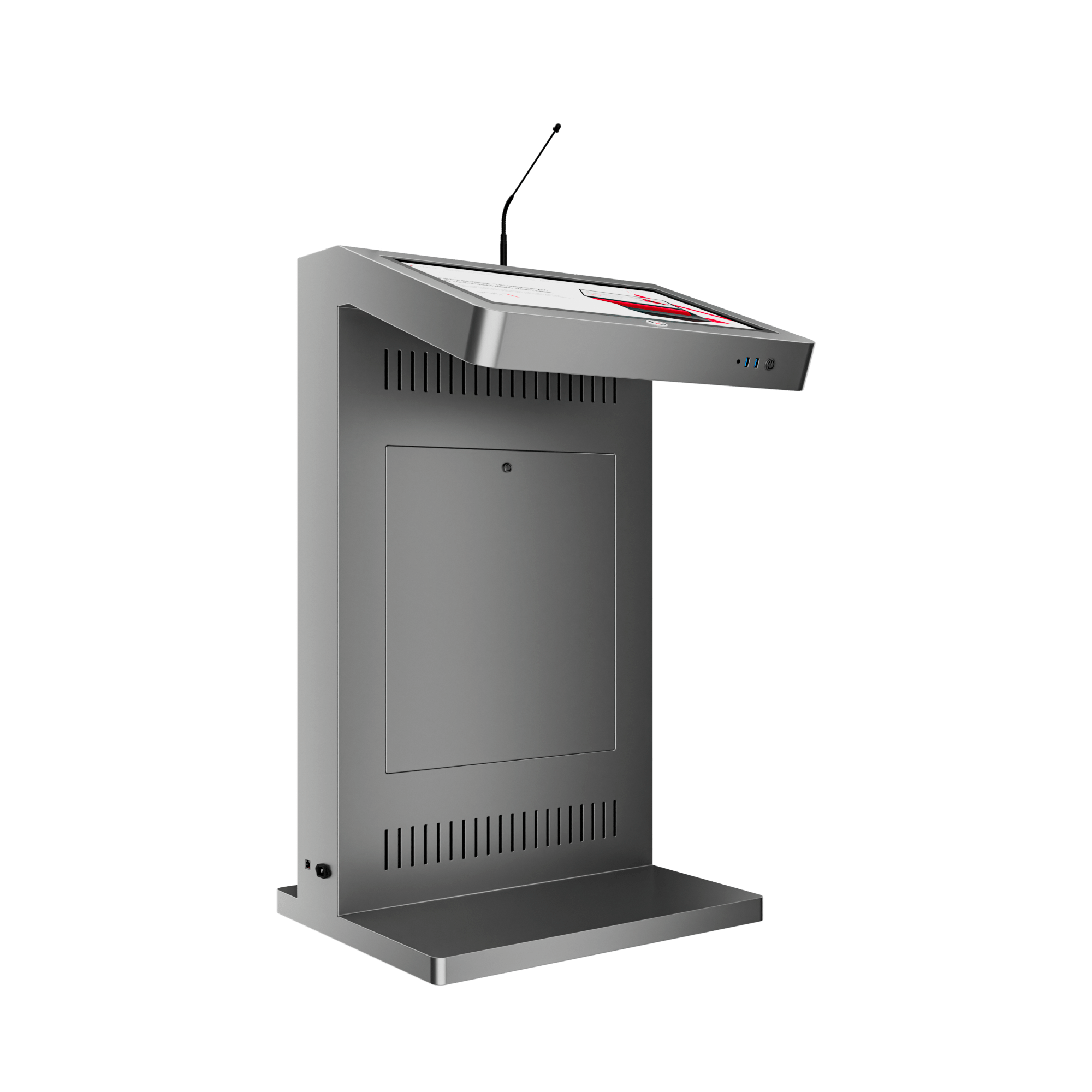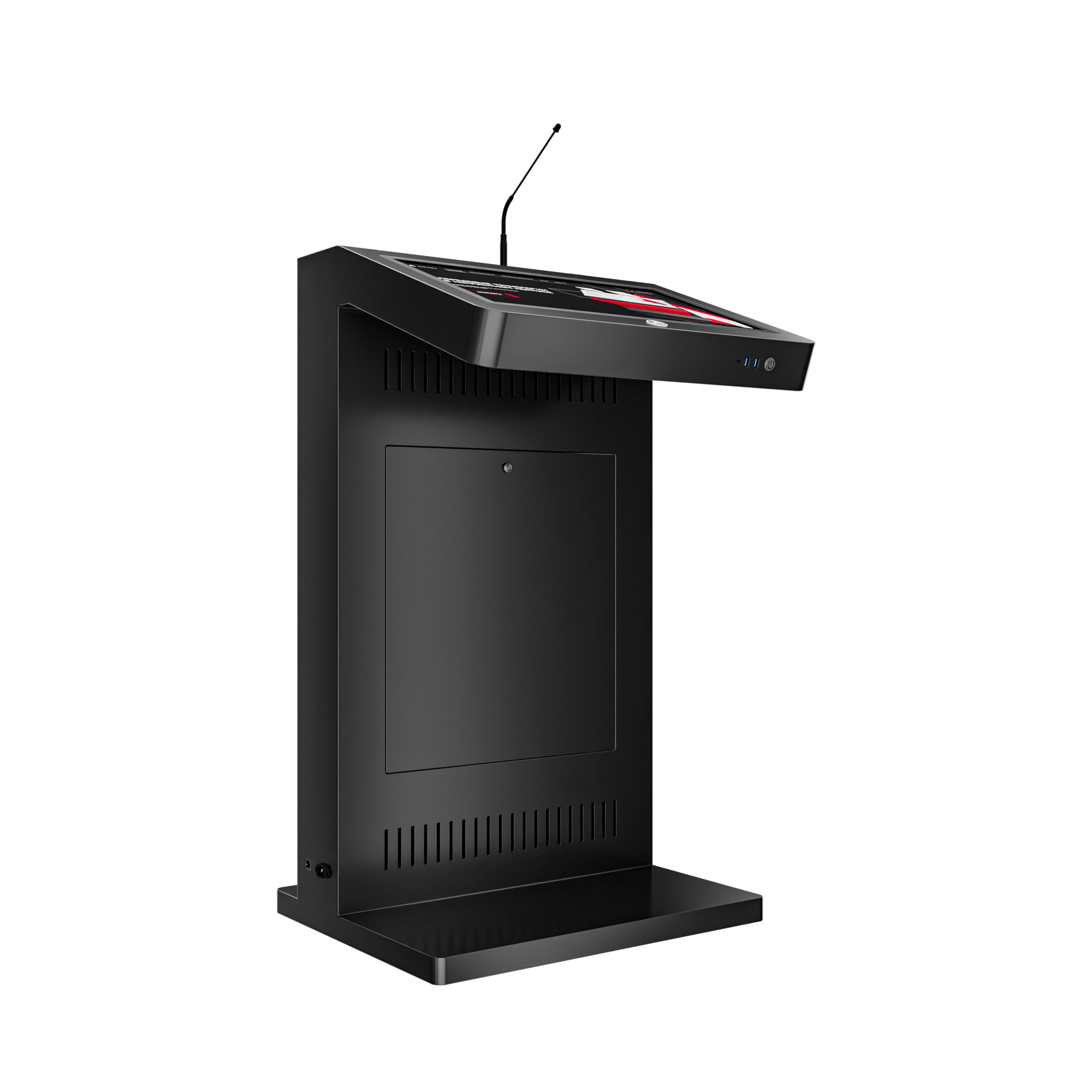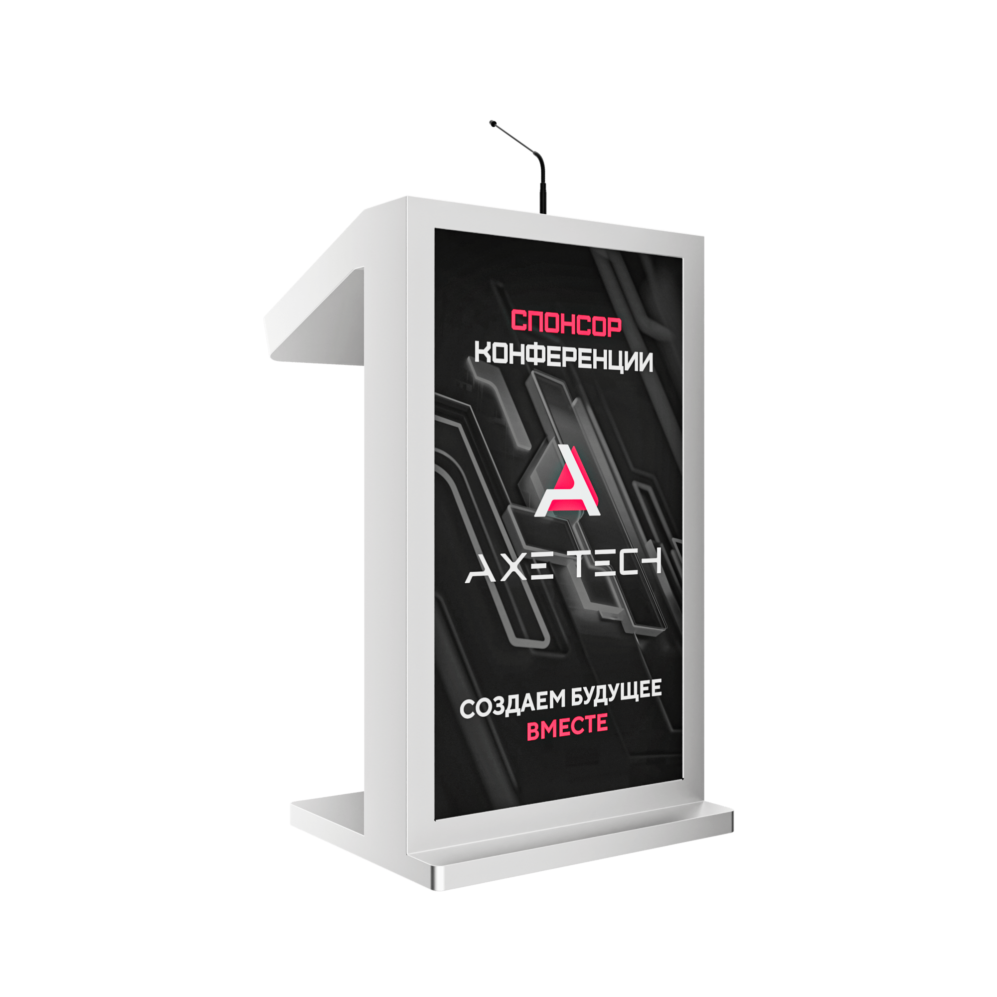 Мультимедийное решение, которое позволяет не только ярко выступить на большую аудиторию, с отображением презентационного материала, но и эффектно продемонстрировать рекламную информацию о компании, предлагаемых товарах / услугах, спикере, на большом внешнем дисплее трибуны. Модель Double оснащена мощным микрофоном, сенсорным дисплеем для спикера, а также большим внешним дисплеем для рекламного контента и набором разъемов для подключения дополнительной техники. Такая трибуна станет прекрасным помощником на конференциях, выставках, спортивных мероприятиях или других мероприятиях, где требуется визуальная поддержка презентаций и общение с аудиторией.