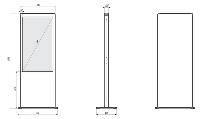 Оригинальный интерактивный сенсорный киоск BM BlackGlass+ 55" выполнен в классическом вертикальном форм-факторе: стальной антивандальный корпус, стильный минималистичный дизайн, яркий дисплей, быстрая ИК-рамка которого поддерживает до 20 одновременных касаний. К BlackGlass+ можно подключить необходимое дополнительное оборудование – от видеокамеры до считывателя QR-кодов.