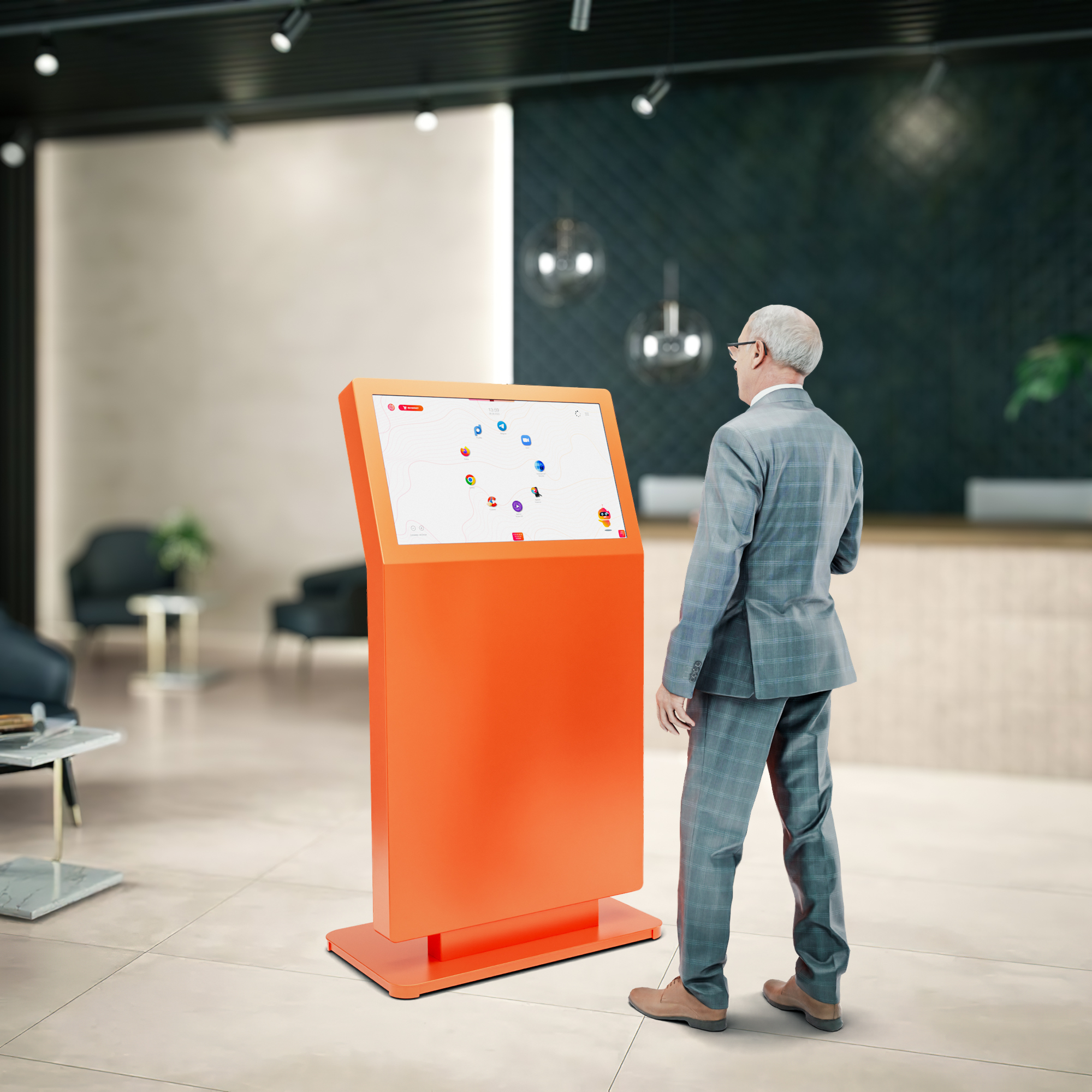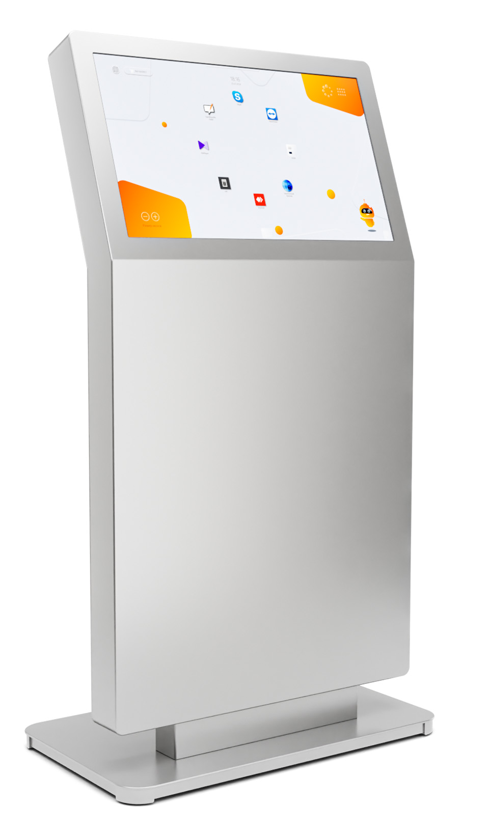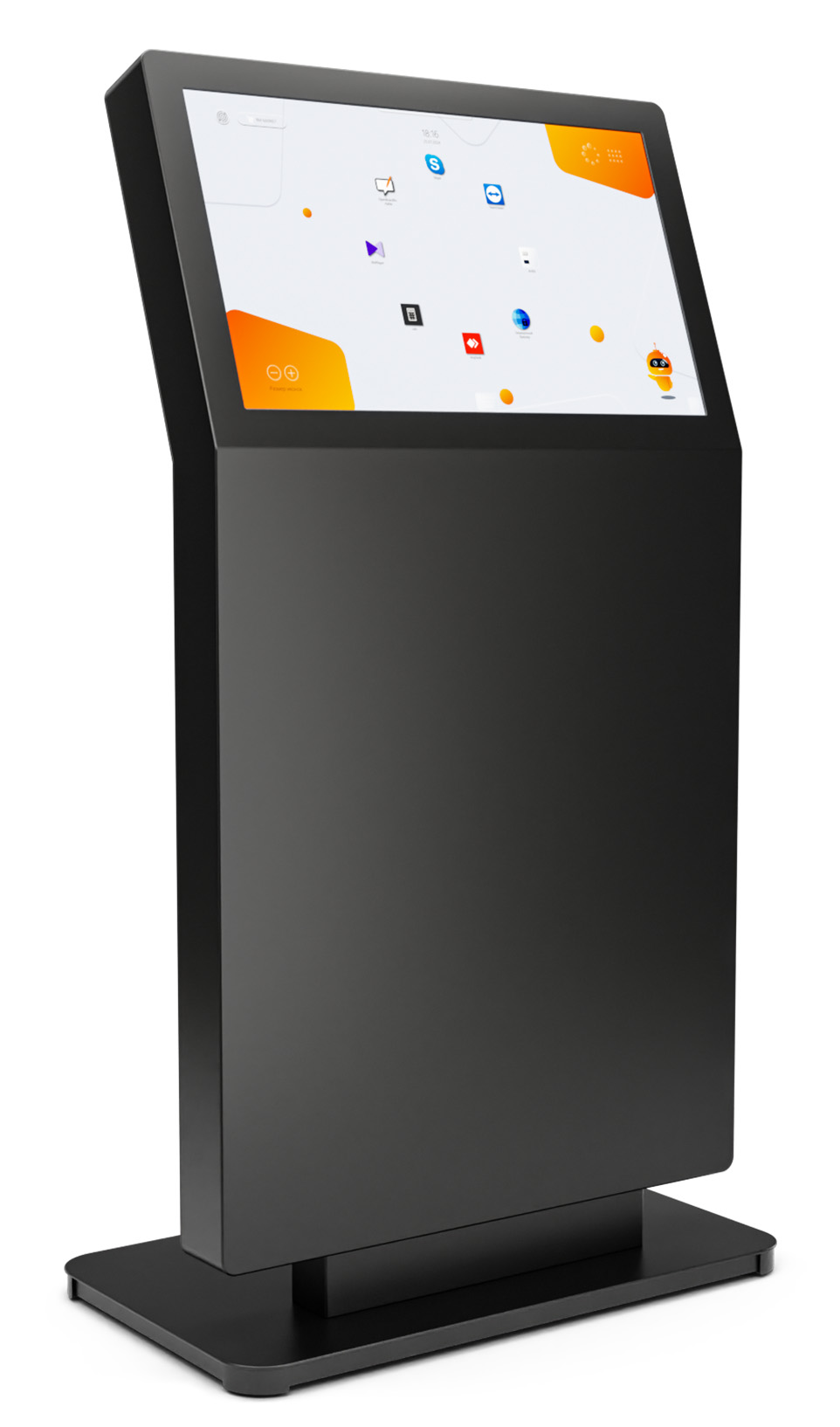 Современное интерактивное решение для мест с высокой проходимостью, отлично подходит для музеев, медицинских центров, бизнес-центров и госучреждений. Широкий сенсорный экран с альбомной ориентацией установлен под эргономичным углом, по этому пользователю комфортно взаимодействовать с контентом даже при длительном использовании.